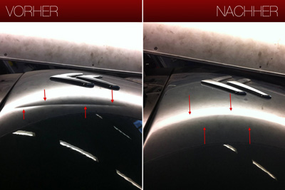 Mit unserer Methode und speziellen Werkzeugen, können wir kleine Dellen und Beulen (ohne Lackbeschädigung) kostengünstig, umweltfreundlich und in kürzester Zeit reparieren. Wenn der Schaden etwas zu groß und eine Teillackierung nötig ist, haben wir auch eine Lackiererei mit der wir kooperieren.
